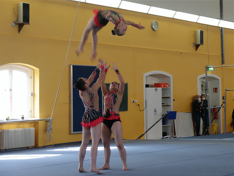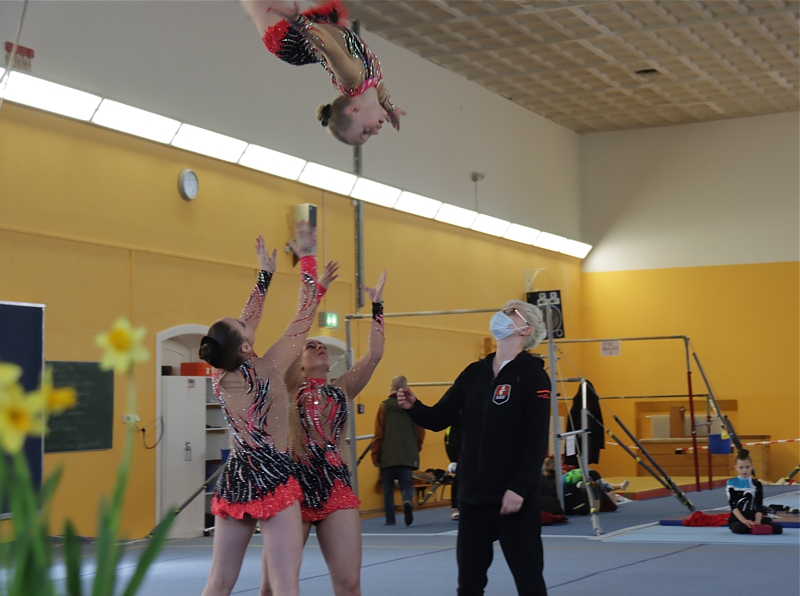 Dorothea Kaufmann, Christina Thoß und Lea-Melina Schmidt hatten es in ihrer Vorbereitungszeit nicht immer leicht. Durch häufige Partnerwechsel turnten die drei erst seit wenigen Wochen gemeinsam in einer Formation. Erst vor 4 Wochen wurde ein neues Regelwerk kommuniziert, welches für den SAV bedeutete, dass die geplante Zusammensetzung aufgrund des Altersunterschiedes nicht möglich ist. Große Enttäuschung vor allem bei Dorothea und Christina, welche schon wieder bei null beginnen und nun mit ihrer neuen Partnerin Lea intensiv trainieren mussten, wenn sie an diesem Wettkampf teilnehmen wollen.
