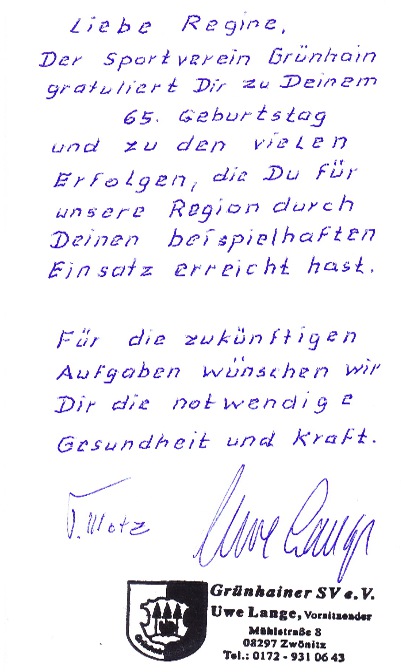 Liebe Grüße Eure Regine