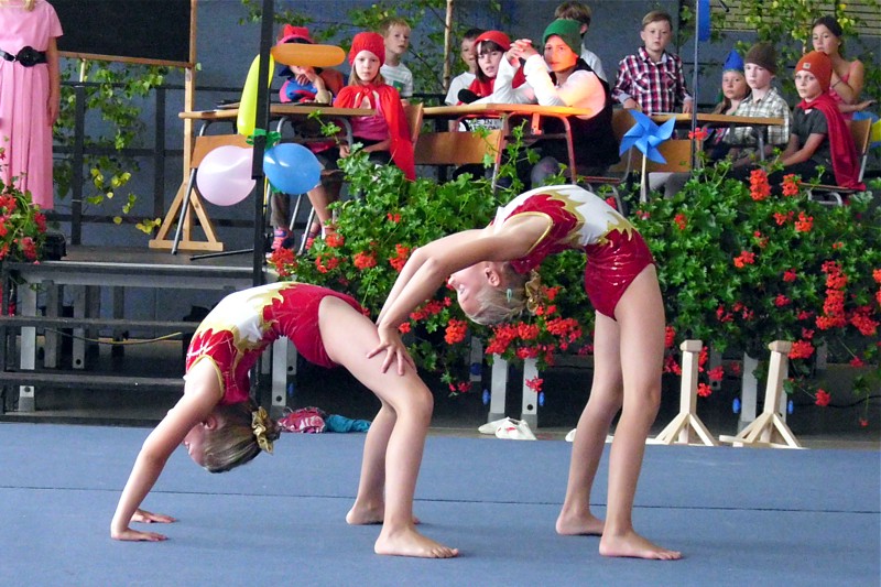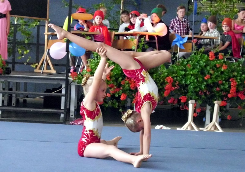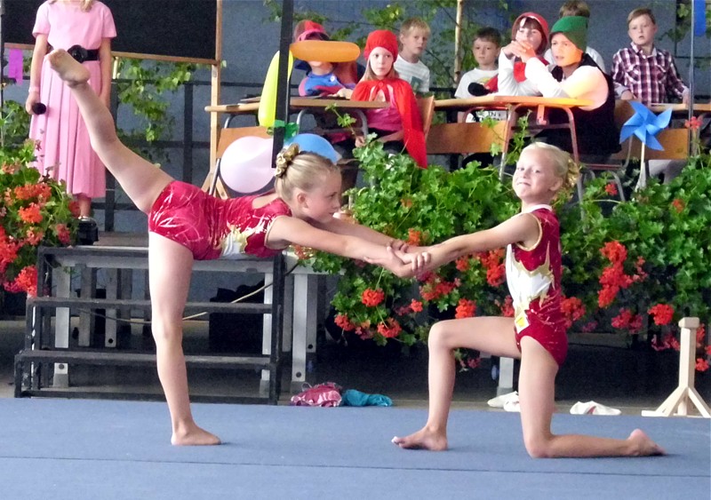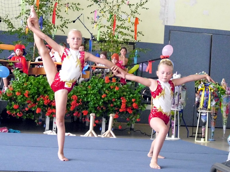 Sophie Ehmer und Johanna Seifert aus Beierfeld zeigten zum Schulanfang eine extra für diesen Anlass einstudierte Übung. Das Publikum, Eltern und Lehrer der Grundschule Grünhain, waren begeistert.