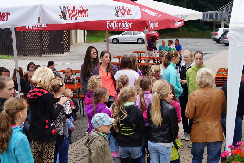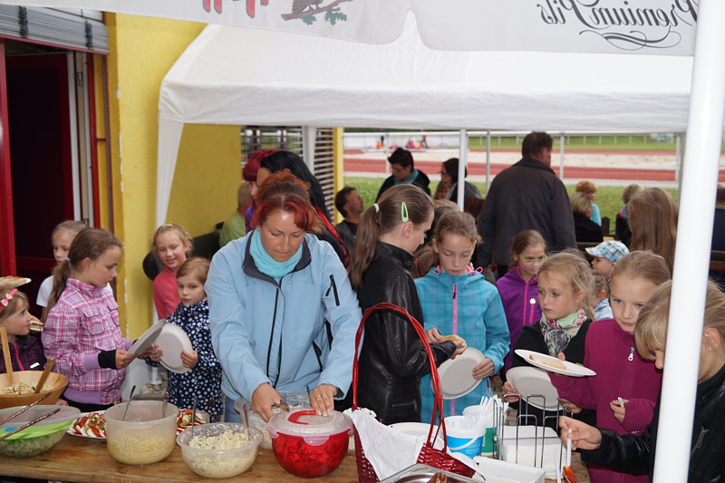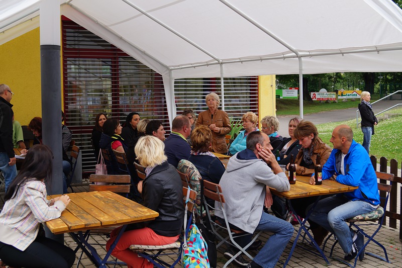 Auch 2014 veranstaltete der SAV zum Schuljahresabschluss ein Grillfest. Dazu hatte Regine alle Sportler, Eltern und Trainer eingeladen. In großer Runde gab's Gelegenheit, jetzt kurz vor der Sommerpause, noch einmal die letzten ereignisreichen Monate Revue passieren zu lassen.