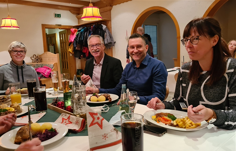 Nach einem Jahr Abstinenz konnten wir 2021 wieder unsere Weihnachtsfeier in der Köhlerhütte durchführen. Los gings mit einem Punsch für alle am Feuerkorb.