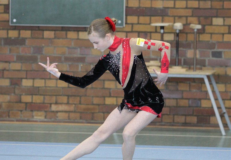 Im Feld der 12 leistungsstarken Schülerpodestakrobaten verwöhnte Kim das Publikum mit ihrer bezaubernden Tangochoreografie. Die Silbermedaillen mit 24,850 Punkten bei den Ostdeutschen und auch bei den Landesmeisterschaften war der Lohn für ihre ehrgeizige Trainingsarbeit.