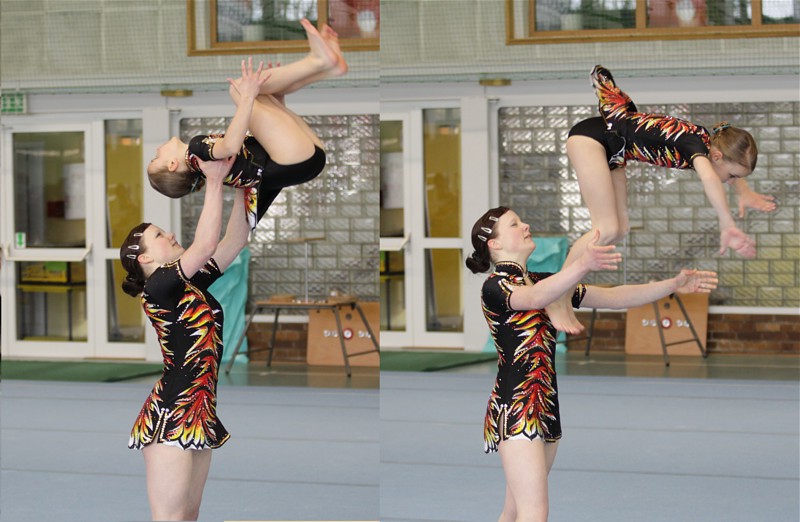 Auch die Beteiligung an den Landesmeisterschaften der Jugendklasse fiel für den SAV Schwarzenberg hervorragend aus. 11 Damenpaare kämpften hier um den Titel. Mit Silber im Mehrkampf (77,750 Punkte), Bronze in Dynamik (26,550 Punkte) sowie Rang 6 in Balance (25,550 Punkte) liessen Helen und Charlene auch Favoriten des Wettkampfes hinter sich.
