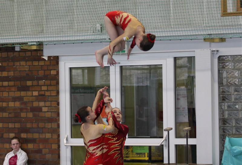 Am Sonntag, dem 14. April, wuchsen die Sportakrobaten aus Schwarzenberg bei den diesjährigen Landesmeisterschaften der Jugend und den ostdeutschen Meisterschaften in der Podestakrobatik über sich hinaus. Der Landesmeistertitel von Helen, sowie vier Silber- und eine Bronzemedaille, waren die überraschende Medaillenausbeute unserer Mädels bei den Wettkämpfen in Hoyerswerda.