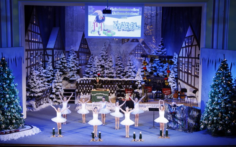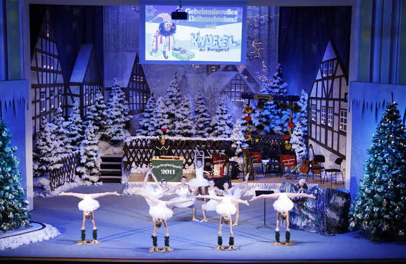 Ein spezielles Kinderprogramm des Erzgebirgsensembles Aue mit der Hauptfigur "Knuffel - der Berggeist" soll den Jüngsten die reichhaltige Kultur und Geschichte des Erzgebirges auf unterhaltsame Weise vermitteln. Deshalb begab sich der Berggeist am 2. Dezember im Kulturhaus Aue mit Hilfe der Sänger, Musikanten und Tänzer des Erzgebirgsensembles auf eine Entdeckertour durch das Weihnachtsland Erzgebirge, um viele Traditonen rund um dieses Mittelgebirge und die Advents-