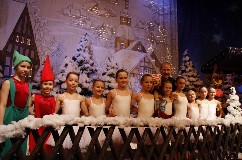 Fabienne und Nelly als Zwerge sowie Charlene, Kira, Clara, Yolantha, Ersila, Kim, Emma, Vivien und Leonie als Schneeflöckchen begeisterten erneut die Kinder, Lehrer und Eltern im ausverkauften Kulturhaus.