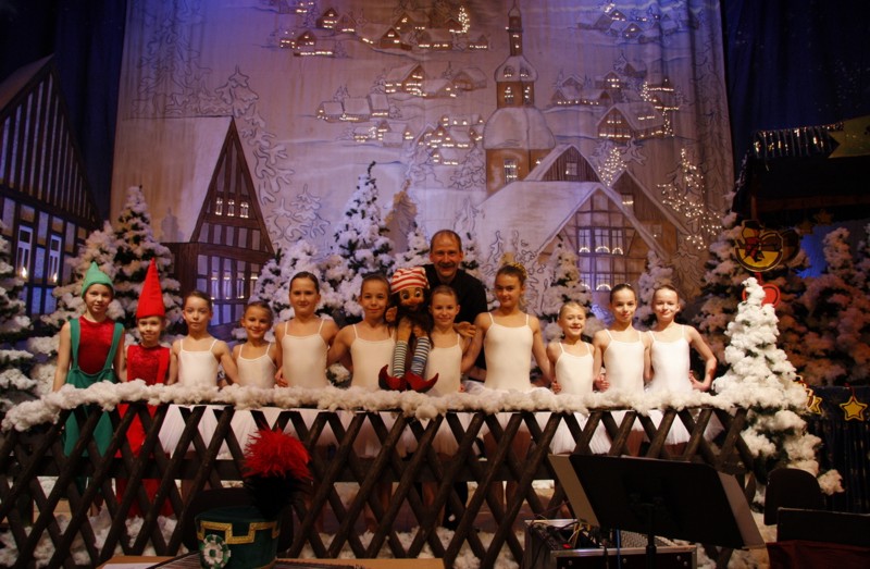 Der Musiker und Sänger Gerald Olschewski gab dem Berggeist Knuffel seine Stimme und spielte die Handpuppe im Programm. Gemeinsam mit Bergmann Steffen Kindt führten die Beiden mit Humor und Einfühlungsvermögen durch ein kurzweiliges Programm, dass durch unsere Mädels als Schneeflöckchen bereichert wurde.