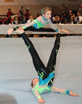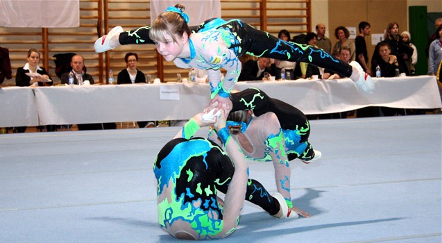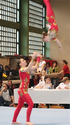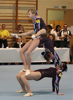 Auf Grund guter Trainingsleistungen entschloss man sich in der Tempoübung den Salto mit 1 Drehung zu turnen. Leider wurde dieses Risiko noch nicht belohnt. Das Aufgreifen mit der Hand von Anna wurde als Sturz gewertet und brachte erheblichen Punktabzug in Technik und Artistik. In der Abrechnung stand daher nur Rang 5 (25,200 Pkt.) zu Buche. Aber, der Versuch zeigt den Ehrgeiz dieser Mädchen und lässt für die Zukunft hoffen.