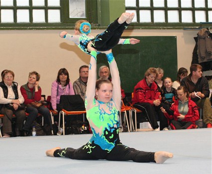 Theresa und Kim trainieren erst seit drei Wochen gemeinsam. Auch deshalb stellten Sie sich nur mit der Balance dem Kampfgericht und erkämpften einen nicht zu erwartenden 2.Rang (25,00 Pkt.). Ein toller Einstieg des neuen Duos vom SAV! Landesmeister bei den Schüler-Damenpaaren wurde das Duo vom SC Riesa mit 26,60 Pkt.