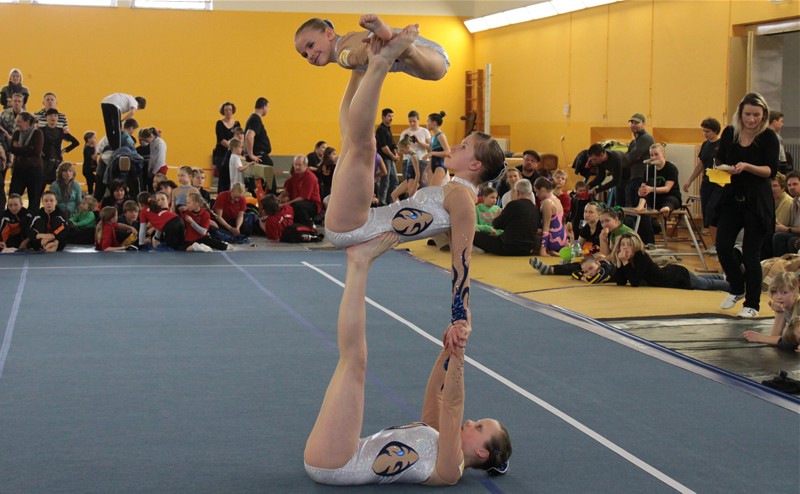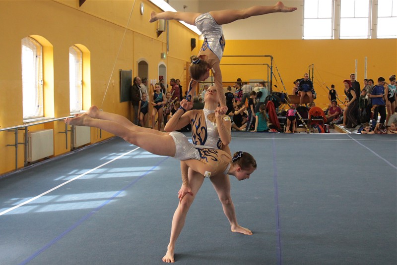 Sechs Damengruppen kämpften um den Sieg in der Schülerklasse. Leider unterlief Helen, Nora und Charlene bei ihrer schönen Balanceübung ein Fehler. Mit 25,500 Pkt. belegten sie hinter den leistungsstarken Sportakrobaten vom BC- Einheit Leipzig, Dresdner SC 1898 und SV TuR Dresden den 4. Platz.