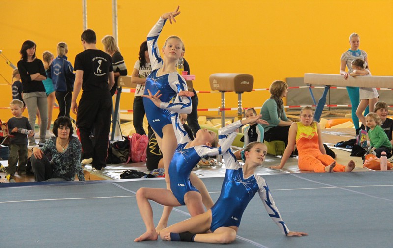 Das noch sehr junge Trio Emma Schippel, Yolantha Thoß und Nelly Beyer zeigten ebenfalles eine schöne Darbietung. Durch den auch hier noch zu geringen Schwierigkeitswert der Übung blieb ihnen nur Rang 9.