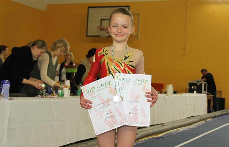 In der Podestakrobatik erkämpfte Clara Blechschmidt mit ihrer ausdrucksstarken Darbietung Bronze mit 24,950 Pkt. vor Emma Schippel/24,200Pkt und Vivien Dinstuhl/23,350 Pkt.