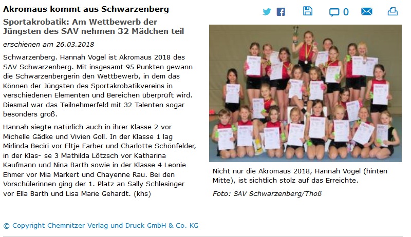 Wie jedes Jahr turnten die Akromäuse des SAV Schwarzenberg um den Titel Akromaus 2018. In diesem Jahr war das Teilnehmerfeld mit 32 Mädels besonders groß.