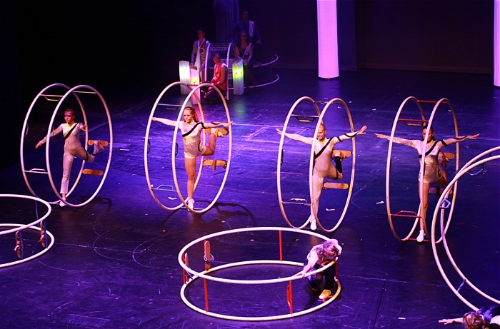 Das "Wasser" stellten u. a. die Rhönradturner vom Sportensemble dar.