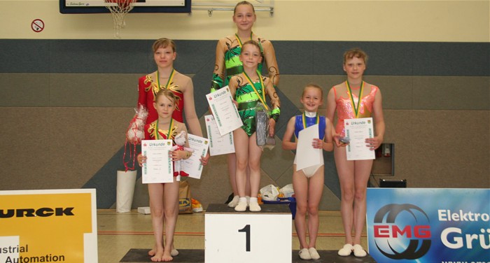 Viele neue Formationen sah das zahlreiche Publikum in der Nachwuchsklasse. Eine sehr sauber geturnte Übung präsentierten Julia Zwingenberger, Annika Richter und Kira Lorenz. Mit 8,65 Pkt. erkämpften die Mädels Gold. Nur einen Hauch dahinter und mit 8,60 Pkt., errangen Stefanie Sandig, Nora Reimann und Clara Blechschmidt Silber. Die talentierten Neueinsteigerinnen Emma Schippel, Yolantha Thoß und Lucienne Bielke überzeugten beim ersten gemeinsamen Wettkampf und erkämpften mit 7,825 Pkt. Bronze.