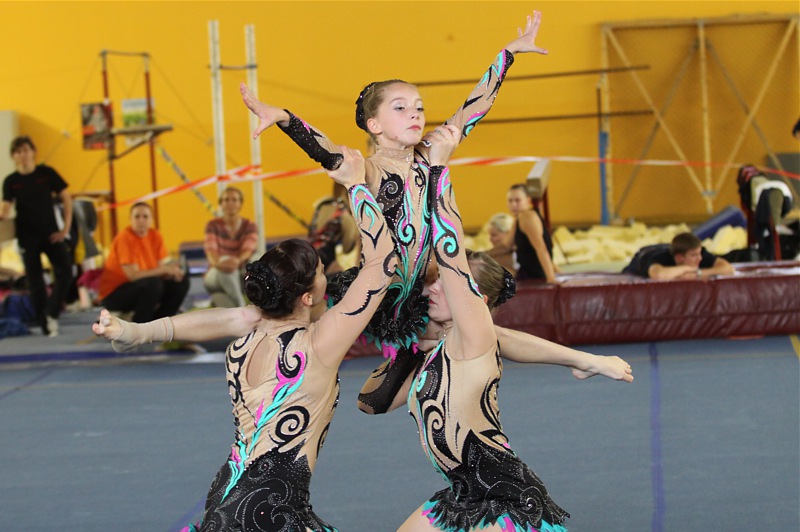 Das favorisierte Nationalmannschaftstrio Sarah Arndt, Anika Liebelt und Johanna Schmalfuß vom Dresdner Sportclub 1898 konnte u.a. eine schwierige Pyramide nicht stehen und erzielte 24,450 Punkte.