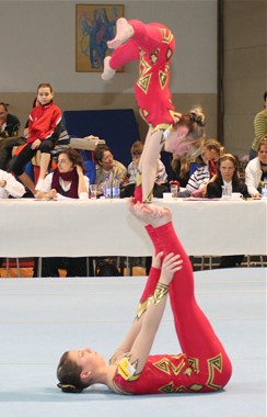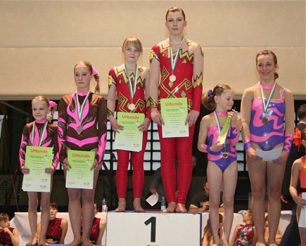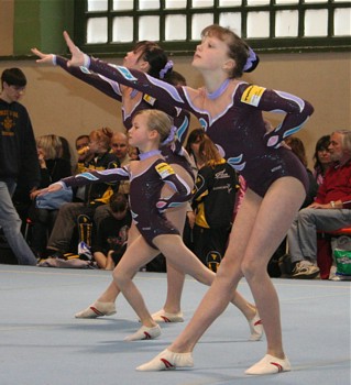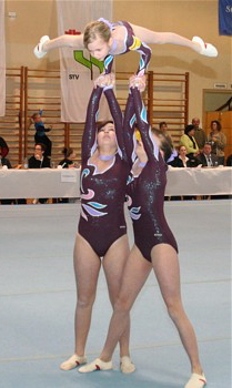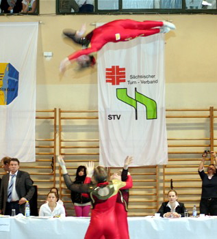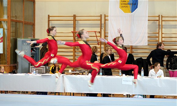 Auf Grund guter Trainingsleistungen entschloss man sich in der Tempoübung den Salto mit 1 Drehung zu turnen. Leider wurde dieses Risiko noch nicht belohnt. Das Aufgreifen mit der Hand von Anna wurde als Sturz gewertet und brachte erheblichen Punktabzug in Technik und Artistik. In der Abrechnung stand daher nur Rang 5 (25,200 Pkt.) zu Buche. Aber, der Versuch zeigt den Ehrgeiz dieser Mädchen und lässt für die Zukunft hoffen.