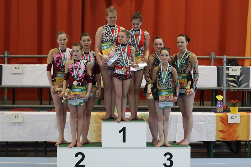 In der Eliteklasse zeigten Lisa Grimm, Helen Ebert und Kira Lorenz erneut tolle Leistungen und erkämpften hinter den starken Damengruppen vom SC Hoyerswerda und Dresdner SC 1898 einen tollen Bronzeplatz im Feld der leistungsstarken acht Trios.