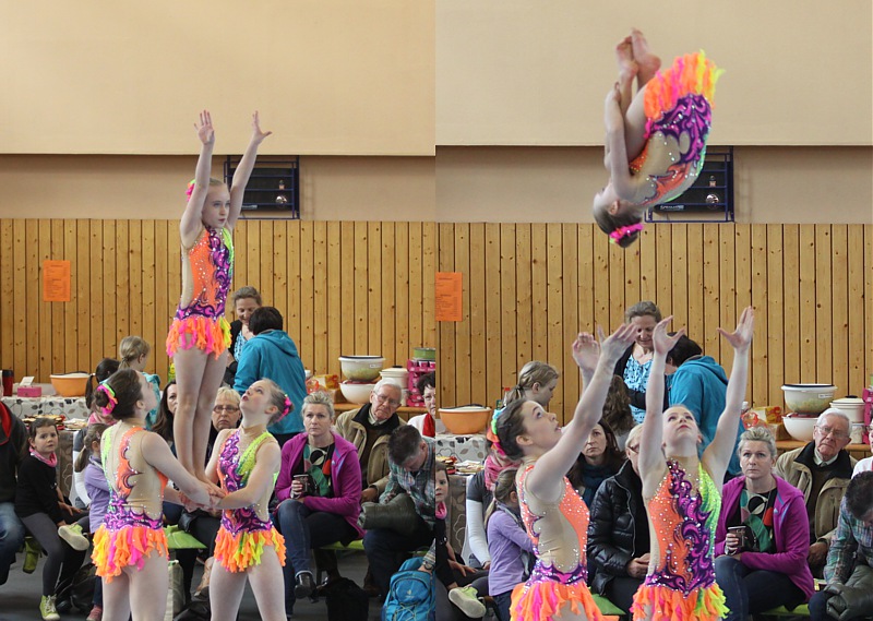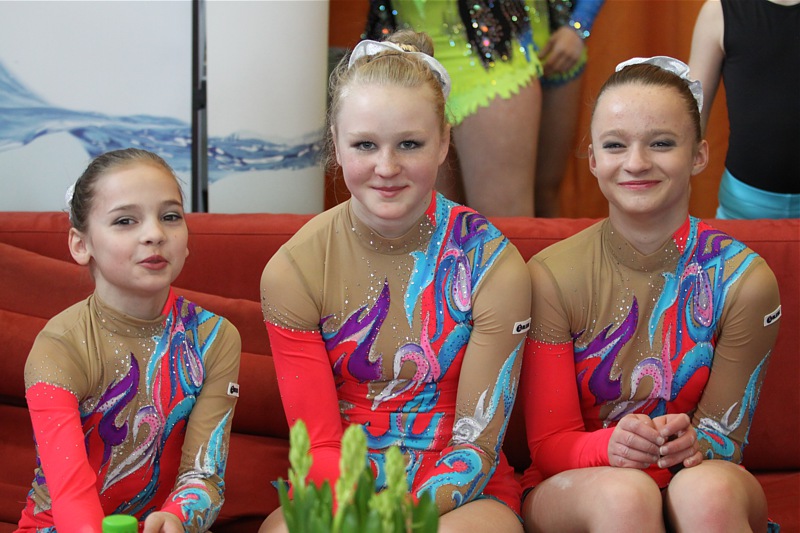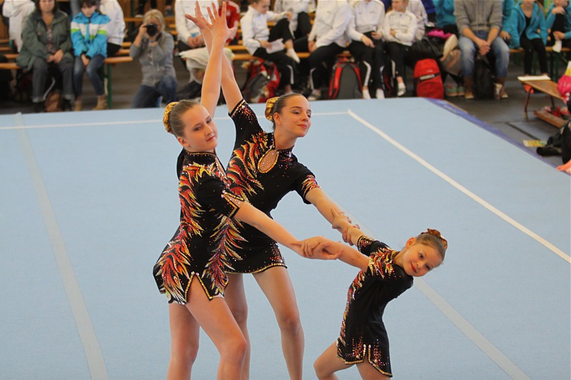 Vivien Dinstuhl, Yolantha Thoß und Alina Illig mussten, wegen des fehlenden Saltos als Bodenelement von unserer Alina, einen Punkt Abzug in Kauf nehmen. Dies konnte aber ihre gute Laune nicht verderben, denn zwei sonst schöne Übungen und Rang 7 waren ein Erfolg.